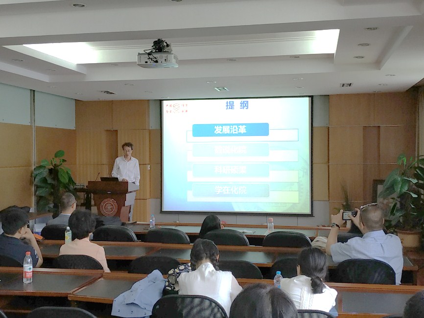 5月19日下午1点,欧美a片 2018年本科招生宣讲会在化学楼A526演讲厅举行。欧美a片 副院长钱雪峰,党委副书记郑浩出席本次宣讲会,并分别对欧美a片 、致远荣誉计划(化学方向)和自然科学试验班的招生工作与招生计划进行了宣讲介绍。