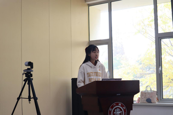 首先,本科学生党支部书记周寅睿向在场师生汇报总结了支部自开展“青春如化”价值引领系列党日活动以来的工作进展。围绕立德树人的根本任务,本科学生党支部面向支部成员乃至全院师生多形式开展价值引领系列党日活动,主题涵盖学风传承、爱国引领、劳动教育、节约意识、基层选调、感悟分享等多个方面,充分发挥支部样板先锋的榜样带头作用。